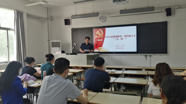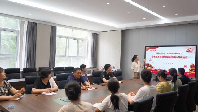 院长于涛以“为什么要强调教育、科技和人才‘三位一体’?”为主题,为英语系党员讲授专题党课。于院长强调,全体教师党员要深刻理解并把握教育、科技、人才工作的重要意义、重大使命和内在联系,要立足外院实际,打造外院特色,“三位一体”推进教育、科技、人才工作,推动科技赋能教育发展,让“科技+人才+创新”迸发更强活力。