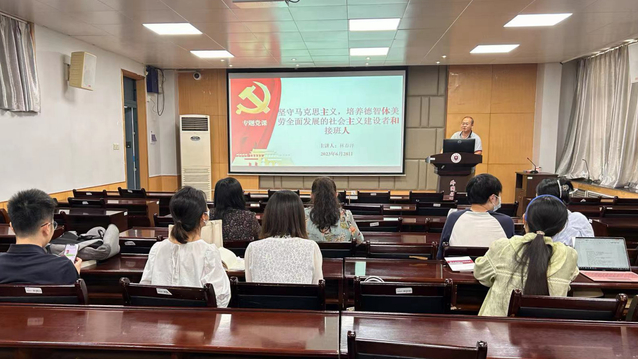 院党委委员林春泽以“坚守马克思主义,培养德智体美劳全面发展的社会主义建设者和接班人”为主题,为日语系、俄语系、西班牙语系党员讲授专题党课。林老师号召党员教师要深入学习贯彻习近平总书记关于教育的重要论述,充分发挥课程思政立德树人的关键作用,讲好中国故事、外院故事,为党育人、为国育才。