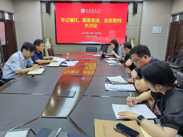 随后,领导班子成员及党支部书记继续深入学习了习近平总书记考察江苏重要讲话精神,并紧扣总书记对江苏工作“四个新”的重大要求,紧密联系岗位职责和学院发展实际,全面对标对表,开展了“牢记嘱托、感恩奋进、走在前列”大讨论,重点围绕主题教育学习期间所学所思所想,立足工作岗位,结合学院党建、教学科研、人才培养等方面存在的突出问题,谈感悟、讲体会,找问题、挖根源、谋思路、提对策。通过讨论,大家一直认为,学院要敢于走在前、做示范,争做全国中俄合作办学的排头兵、先锋队,在推动高质量发展上争当表率。