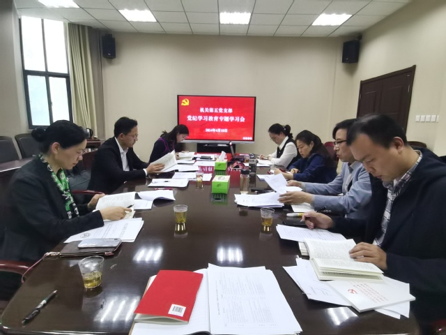 2024年4月18日下午,机关第五党支部召开全体党员会议,研究布置党纪学习教育工作,开展党纪学习教育首次集体学习研讨。纪委副书记、支部书记沈道海主持会议。